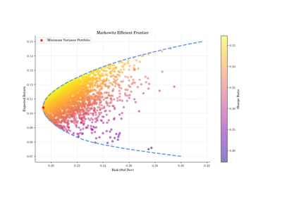 Plots# Below is a gallery of all the charts in the calendar and their source code. Black Monday Black Monday GBM via Transformation of BM GBM via Transformation of BM Brownian Motion Brownian Motion Capital Asset Pricing Model Capital Asset Pricing Model Compound Effect Compound Effect Correlation Correlation Pearson Correlation Multiple Pairs Pearson Correlation Multiple Pairs Compounded Interest Compounded Interest Discretisation Schemes Discretisation Schemes Euler, Milstein Schemes Convergence Euler, Milstein Schemes Convergence Chi Distribution Chi Distribution Exponential Distribution Exponential Distribution Log-Normal Distribution Log-Normal Distribution Normal Distribution Normal Distribution Student-t Distribution Student-t Distribution Convergence of Compounding to Euler’s Number Convergence of Compounding to Euler's Number Exponential Decay Exponential Decay Geometric Brownian Motion Geometric Brownian Motion Markowitz Efficient Frontier Markowitz Efficient Frontier Martingales Martingales Moving Averages Moving Averages Normality Testing Normality Testing Ornstein-Uhlenbeck Process Ornstein-Uhlenbeck Process Random Walk Random Walk Returns and Log-Returns Returns and Log-Returns Sharpe Ratio Sharpe Ratio Time Value of Money Time Value of Money Yied Curve Yied Curve Yied Curve Shapes Yied Curve Shapes Gallery generated by Sphinx-Gallery